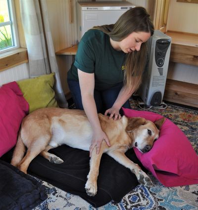 Bailey has been providing massage therapy at the kennel since December 2018, and has been walking dogs, helping in the office, and offering extra snuggles for the past 3 years. We are seeing impressive results! We cannot guarantee you will see any specific result with your pet, or that they will agree to massage therapy. You will only be charged for the massage time spent with the pet, and unless you have a hard timing or money limit, the massage will end when they are ready, whether that is less or more time than the pet owner requested. This is their massage time!